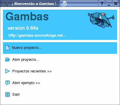 Nada más abrir Gambas nos encontramos con su asistente: