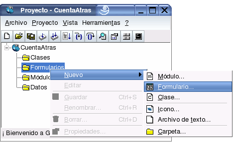 Vamos a crear el formulario principal de la aplicación. Para ello, en cualquier parte de la ventana del Proyecto hacemos clic con en botón derecho del ratón y creamos un formulario nuevo.