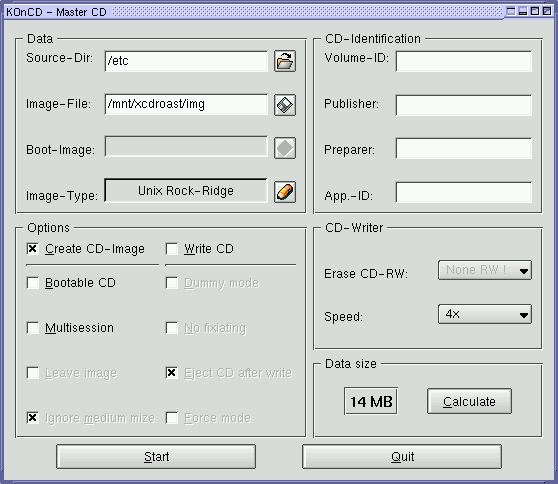 Mit diesem Werkzeugen kann man schon unter Benutzung der Kommandozeile CDs brennen. Aber wenn du eine nettere und freundlichere graphische Benutzeroberfläche haben möchtest, brauchst du zusätzlich noch ein Frontend. Es gibt sehr viele Frontends, aber in diesem Artikel reden wir nur über xcdroast (http://www.xcdroast.org) und koncd (http://www.koncd.org/). xcdroast scheint das Frontend mit den meisten Möglichkeiten zu sein und wir mögen koncd, weil es wirklich sehr einfach zu benutzen ist.