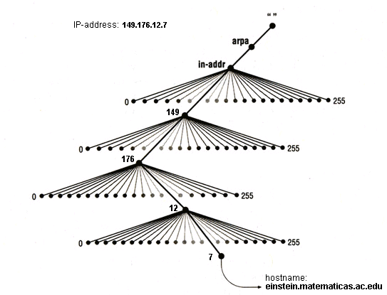 Im Domain Name System besteht der komplette Domainname aus einer Reihe von Etiketten, welche bei der Domain beginnt und an der Wurzel (root) endet, wobei die einzelnen Etiketten durch Punkte getrennt sind (z.B. einstein.matematik.ac.edu). Unter der Bedingung, daß jede Domain von unterschiedlichen Institutionen verwaltet werden kann, besteht die Möglichkeit eine Domain in mehrere Subdomains zu zerlegen, deren Administration von anderen Institutionen übernommen wird.