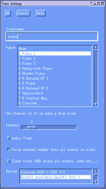 Um das Pianofenster zu bekommen, klickst du entweder auf den Knopf in der Toolbar mit der Klaviertastatur oder, wenn du das Pianofenster für einen bestimmten Track (Instrument) haben möchtest, klickst du mit der rechten Maustaste in das Barcodefeld des gewünschten Tracks.