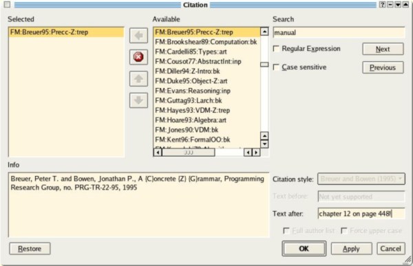 par simple insertion via ALT-i r (pour les références), ce qui vous va