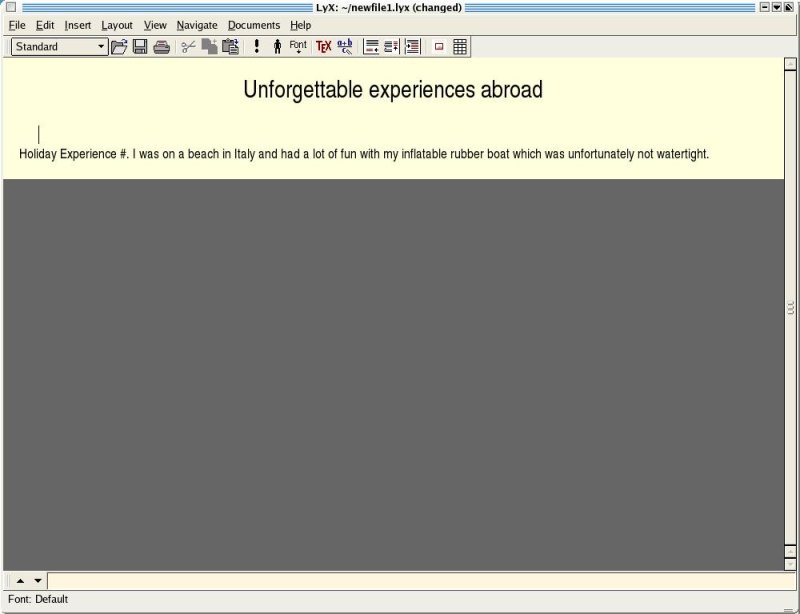 expérience de vacances numéro ... ». LyX s'attend à une description de la mise
