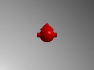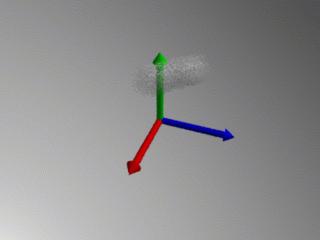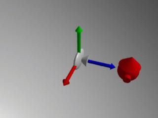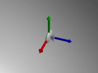 Maintenant la caméra est exactement où nous voulions qu'elle soit. A partir de maintenant toutes les modifications de positionnement dans la scène se référera au système de coordonnées actuel. Dans l'exemple suivant le modèle reste à l'origine mais nous faisons tourner la caméra autour: