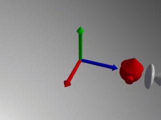 Bien sûr, les transformations insérées entre MotionBegin et MotionEnd ne sont pas forcément des translations. RenderMan peut calculer des trajectoires non linéeaires pour le Motion Blur. L'exmple suivant montre une rotation de 25 degrés autour de l'axe des y du système de coordonnées.