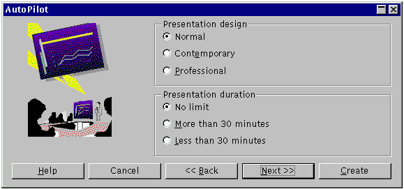 ÇÁ¸®Á¨Å×À̼ÇÀ» ¸¸µå´Â ¹æ¹ý¿¡´Â µÎ°¡Áö ¹æ¹ýÀÌ ÀÖ´Ù. : óÀ½¿¡ ºñ¾î ÀÖ´Â ÇÁ¸®Á¨Å×À̼ÇÀ¸·ÎºÎÅÍ ½ÃÀÛÇϰųª µµ¿ì¹ÌÀÎ ÀÚµ¿ Ç×ÇØ»ç(Auto Pilot)À» ÀÌ¿ëÇÏ´Â ¹æ¹ýÀÌ ÀÖ´Ù. µµ¿ì¹Ì¸¦ ÀÌ¿ëÇÏ·Á¸é File->New->Presentation¸Þ´º¸¦ ¼±ÅÃÇÏ¸é µÈ´Ù. µµ¿ì¹ÌâÀÇ Áö½Ã»çÇ×À» µû¶ó°¡´Ù º¸¸é ¿©·¯ºÐÀÇ ¼±ÅûçÇ׿¡ µû¶ó ÀûÀýÇÑ ½½¶óÀ̵å ÅÛÇø´µéÀÌ ¸¸µé¾îÁö°Ô µÈ´Ù.(¸¶Ä¡ ¸¶ÀÌÅ©·Î¼ÒÇÁÆ®»çÀÇ ÆÄ¿öÆ÷ÀÎÆ®¿Í ¸Å¿ì ºñ½ÁÇÏ´Ù)