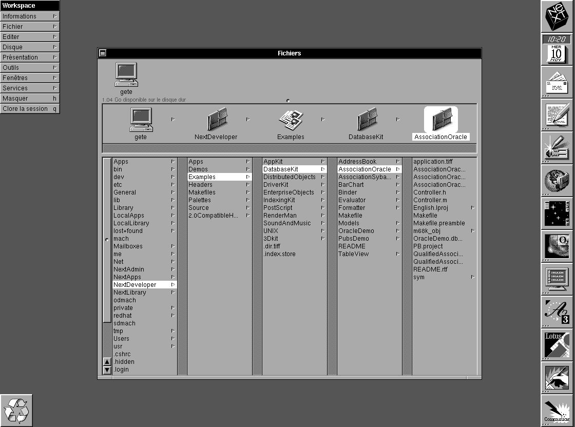 Temidden van de revolutionaire tools van NeXTStep, was de eerste die op het scherm verscheen ongetwijfeld de File Viewer. Deze startte automatisch als je inlogde, en liet je op een bijzonder prettige manier door directories en bestanden navigeren.