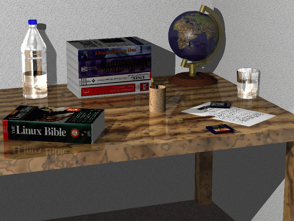 Мы сопроводим описания иллюстрациями. Все картинки использованные для создания сцены, а также все pov-файлы могут быть получены здесь в формате tar.gz