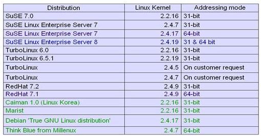 Основные дистрибутивы для S/390 и zSeries -- это Red Hat, SuSE и Turbolinux.