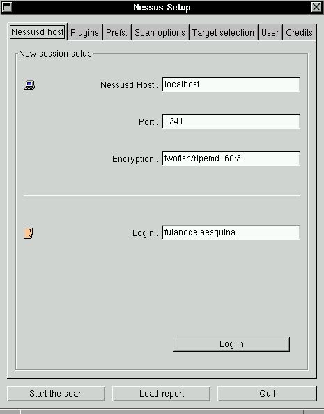Первая закладка называется "nessusd host". Здесь Вы можете подключиться к хосту nessusd нажав на